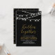 Celebre o seu dia especial com este convite de aniversário de 50 anos, cheio de estilo! Este design apresenta uma tipografia de letra cursiva dourada elegante e cordas de luz sobre um fundo preto. Itens correspondentes disponíveis na minha loja BaraBomDesign.