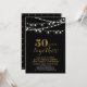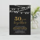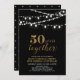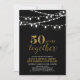 Celebre seu dia especial com este convite de festa de aniversário de 50 anos elegante! Este design apresenta uma tipografia de texto dourado elegante e cordas de luz em um fundo preto. Itens correspondentes disponíveis na minha loja BaraBomDesign.