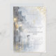 Celebre o amor em sua forma mais poética com esta design evocativa: duas silhuetas se aproximando debaixo de um guarda-chuva solteiro, caminhando por uma rua urbana encharcada de chuva envolta em luz de ouro. É um momento silencioso de intimidade — onde o mundo desaparece, e apenas o amor permanece. Enquadrada por um fundo branco macio, a cena é iluminada suavemente por ouros e pelo brilho quente das folhas do outono. Essas delicadas folhas de ouro não só saem do canto superior, como também descansam suavemente na parte inferior — como se o próprio tempo tivesse deixado seu rastro em fragmentos de memória envolventes. O resultado é uma perfeita harmonia de agitação e movimento, simplicidade e emoção.