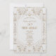 Real, Romântico, design de cartão vintage com um estilo art déco Great Gatsby, um velho Hollywood dos anos 20, com sobreposição de Fleur-de-lis em folha de ouro falsa, divisor e fontes lindas. Use a ferramenta Personalizar para adicionar suas informações. Para mais, visite, por favor, minha Coleção Royal White 1920s Great Gatsby.