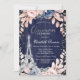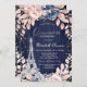 Convite Ouros de Torre Eiffel Marinho Rosas Azuis Quincean