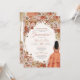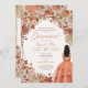 Convite de quinceanera com flores, rosas, erva-pampas e palmeiras secas e folhas de outono. Esta design apresenta uma menina de vestido marrom, cercada por lindas flores de outono e borboletas monarcas (que podem ser escondidas na ferramenta design se você não as quiser). Veja o compro para este design em variações múltiplas, incluindo tom de pele/cores de cabelo, e sem a menina também.