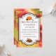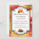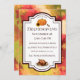 Convite formal com folhas artísticas no fundo e texto num quadro com uma abóbora, girassol, bolotas e um peru cozido.