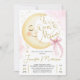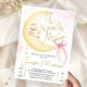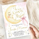Convite Over the Moon Baby Shower Girl Pink Bow Cute Moon