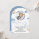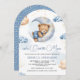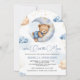 Convite Over the Moon Sleeping Teddy Bear Blue Baby Shower