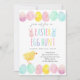 Este convite adorável apresenta ovos de Páscoa pintados à mão em aquarela e um pintinho.