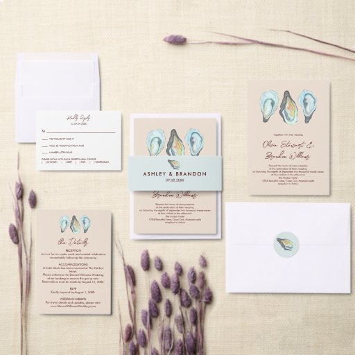 This elegant watercolor oyster wedding invitation is perfect for coastal, seaside, and nautical weddings. It features a soft, hand-painted oyster illustration for a refined and romantic feel. Ideal for beach weddings, seafood lovers, and ocean-inspired celebrations, this invitation can be personalized with your wording and colors to match your wedding aesthetic.