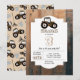 Um padrão de caminhão trator marrom e bege com um ancinho e caçamba. Ideal para quem ama tratores, caminhões, máquinas pesadas, agricultura ou apenas adora brincar com caminhões de brinquedo. Convites de aniversário ideais, decoração de festa correspondente disponível nesta coleção. Personalize o texto e faça-o seu.