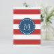 Convite Padrão de Stripes brancas vermelhas, monograma azu