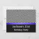 Convites de festas aniversário de 21 anos. Adequado para todos os aniversários e eventos etários. Tecla de verificação - cores padrão de preto e branco, Blue Trims. O Rsvp está disponível sob solicitação em estilo semelhante.
