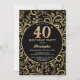 Convite Padrão Floral aniversário de 40 anos preto e Doura