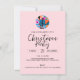 Pinks vibrantes e convite de festas de Natal moderno. design de tipografia de na moda com padrão geométrico roxo e azul-bebê com uma árvore de Natal central com bolhas.