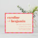 Convite de Casamento com Padrão Xadrez Rosa e Laranja Ousado