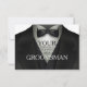 Elegantes cartões de pedido de participação de padrinho de casamento em preto formal com gravata borboleta. Lê-se 'Seu Serviço é Solicitado como Padrinho'. Altere para personalizar os pedidos de participação para todos os rapazes - padrinho, melhores amigos, pajem e jovens padrinhos. Você conquistou a garota, agora é hora de reunir os rapazes!