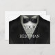 Cartões de pedido de casamento de padrinho de smoking clássico - O fundo é um smoking preto formal com gravata borboleta. Lê 'Seu Serviço é Solicitado como Padrinho'. Altere para personalizar os pedidos da festa de casamento para todos os seus rapazes - padrinho, padrinhos, portador do anel e jovens padrinhos. Você conquistou a garota, agora é hora de reunir os rapazes!