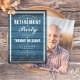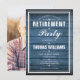 Um convite de festa de aposentadoria elegante pode ser personalizado com as informações do seu evento especial em um fundo de painéis de madeira rústica azul e foto especial no verso. Criado por Thisisnotme©