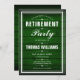 Um convite de festas de aposentadoria de na moda pode ser personalizado com suas informações especiais sobre eventos em um fundo de painéis de madeira verde rústico. Projetado por Thisnotme©