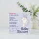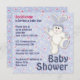 Bonitinho do País Doce convites para chás com adorável coelhinho branco de brinquedo recheado de chapéu fofo, flores dispersas e borboletas em fundo azul pastel. A placa de volta tem design correspondente, e o coelho pode ser excluído como você prefere. Personalize áreas de texto com suas informações.