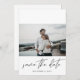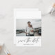 Obtenha entusiasmo por seu casamento enviando um cenário de fotos moderno e chic Salve o cartão de data com sua fotografia e caligrafia moderna. Veja nossa coleção de convites para fotos para mais estilos ou orientações de fotos.