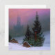 Cartão com a pintura a óleo Paisagem de Inverno de Caspar David Friedrich (1811). Neve e pinheiros preenchem a paisagem. Um jovem reza sobre uma rocha para a Santa Cruz. Uma igreja aparece na névoa. Um presente de Natal maravilhoso!