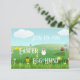 Junte-se a nós para a Caça aos Ovos de Páscoa. Convite de festa com paisagem gráfica de Páscoa. Personalize ambos os lados com os detalhes da sua festa.