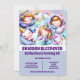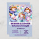 Um desenho gráfico gráfico de cor d'água adorável e tão fofo que apresenta meninas e unicórnios que estão dormindo profundamente ao lado uns dos outros, todos escondido em suas bolsas adormecidas, púrpuras e azuis, coloridas e pastéis. As meninas estão vestindo bandidos com chifres unicórnios e algumas bolsas adormecidas têm chifres de unicórnio ouro também. Todos eles são colocados contra um fundo bonito rosa, roxo e azul que tem modelos de texto roxas editáveis para sua redação personalizada. Estas são ideais para a sua filha se ela está tendo um tema de unicórnio, soneca / pijama, ou dorme sob festa para amigos celebrarem seu aniversário.