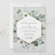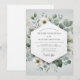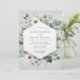 Delicate pale green blooms are intertwined with lush eucalyptus leaves in a soft watercolor style. This design evokes a gentle, natural romance, perfect for a serene and elegant event.