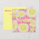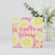Frutado, gasoso, doce e azedo... fatias de limão, bolhas e estrelas flutuam em limonada rosa. Convite de festas com um design personalizável cor-de-rosa, amarelo, laranja e branco para você personalizar com seu próprio texto, imagens e ideias. Um lápis de cor original e desenho de tinta branca por Jess Perry.