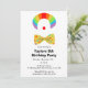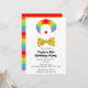 Celebre em estilo com estes brilhantes convites de aniversário temáticos de palhaço de cor arco-íris. Eles apresentam uma ilustração de uma peruca de palhaço arco-íris, nariz de palhaço vermelho e gravata de arco amarela. Esses suprimentos estão prontos para serem personalizados com seu próprio texto.