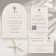 This simple and elegant tropical wedding invitation embodies refined Palm Beach style with a modern, minimalist sensibility. A custom royal palm tree monogram anchors the design, featuring the bride and groom’s initials gracefully placed on either side of the palm for a look that feels both personal and polished. Clean typography and airy spacing with an ivory beige background, the color of a sugar sand beach, creates an upscale aesthetic that blends tropical warmth with contemporary sophistication. Perfect for a coastal or destination celebration, this invitation sets the tone for a stylish, sun-kissed wedding where effortless luxury and thoughtful design take center stage.