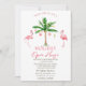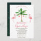 Árvore natalícia de palma de aquarela, bolas, flamingos cor-de-rosa sobre fundo branco. Estes belos convites de Natal são perfeitos para convites de festas de janto de Natal, convites para troca de presentes de Natal, angariadores de fundos de Natal, convites para bolas de férias e outros eventos realizados durante o mês de dezembro. Use apenas os campos modelo para adicionar suas próprias informações de evento.