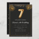 Palma tropical de Ouro de luxo deixa Convite de aniversário 7. Convite de aniversário 7 adorável em balões pretos e dourados design com folhas de palma tropical ouro. Personalize com os detalhes da sua festa e envie um e-mail para a família e amigos convidando-os a comemorar o aniversário de 7 com estilo!