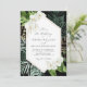 verde tropical quadro geométrico branco design floral num fundo preto. O texto e as cores podem ser personalizados para corresponder ao tema do seu casamento.