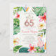 Folhas tropicais de palma, flores e flamingo rosa. Este convite é facilmente personalizado para o seu evento simplesmente adicionando os seus detalhes.