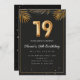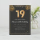Palma Tropical de Ouro de luxo deixa o 19º Convite de aniversário. Adorável 19º convite de aniversário em balões negros e dourados design com palmeiras tropicais ouros. Personalize com os detalhes do seu partido e envie mensagens para familiares e amigos convidando-os a comemorar o 19º aniversário com estilo!