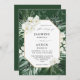 Prepare seus convidados para comemorar seu casamento Praia, Tropical, Verão ou Destino com suas Palmas Tropicais e Convites Florais Brancos em Verde Escuro. Seus novos convites para o casamento apresentam folhas de palma pintadas com aquarelas e flores brancas, de orquídeas, com verdes senosos e verdes de menta. Um toque de ouro completa seu design luxo de convite para casamento. É o mais perto possível do costume feito, mas sem o preço personalizado feito. Use nossas modelos para criar seus convites facilmente em minutos. Visite esta página para criar seus convites de casamento hoje.