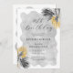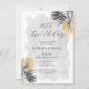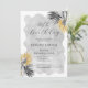 O chá de panela de palma tropical elegante e chic apresenta dois arranjos de folhas de palma desenhadas por linha preta e folhagem dourada. O título de aniversário é escrito em um roteiro moderno e aberto. Uma lavagem aquosa de cinza macia e romântica puxa a design na frente e atrás. Muito fácil de personalizar. Este item faz parte da coleção Elegante de Palma Tropical. A estética do eterno torna isso apropriado para qualquer época do ano.