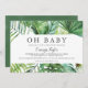 Este convite horizontal para chás de fraldas de palma tropical selvagem oh bebê é perfeito para um chá de fraldas temático de praia. A design apresenta um conjunto exótico de folhas de palmeiras de banana-d'água verde, samambaias, folhagem, plantas botânicas e verde para uma sensação tropical de verão.