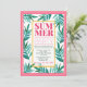 Uma borda rosa quente e frondes de palma verdes criam um convite de festas de verão, cor d'água, de tamanho grande. <a href='http://www.freepik.com/free-vector/beautiful-summer-party-brochure-with-hand-painted-palm-leaves_896680.htm'>Concebida por Freepik</a>. <br/>() A placa é fácil de personalizar com o seu texto, fonte, cor da fonte, opções de forma de papel e escolha de seis tipos de papel.<br/>() Não exatamente o que você está procurando? Todos os nossos produtos podem ser personalizados para atender às suas necessidades sem custos adicionais.<br/>() Basta entrar em contato conosco em heartfelthelper@gmail.com<br/>() Coordenando os produtos disponíveis: Apenas nos pergunte!