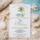 Celebre um marco importante com um estilo costeiro descontraído com este convite elegante de festa de 21 anos tropical. Com uma bela palmeira em aquarela com vista para a costa serena de uma praia, este design cria a atmosfera perfeita para uma celebração sofisticada à beira-mar, festa tropical, reunião de aniversário na praia ou evento de aniversário de destino.