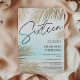 Piscina de palmeira e praia, simples e cinzenta tropical Sweet 16 convite de aniversário com tema de praia em folha de palmeira com uma fotografia de uma praia tropical de Verão