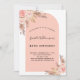 Para uma festa de aniversário moderna, elegante 40º (ou qualquer idade). Um quadro de arco, branco e rosa como fundo. Decorados com ouro rosa e flores, rosas e erva-pampas cor-de-rosa. Personalize e adicione um nome e detalhes. Traseira: impressão de mármore rosa de ouro leve.