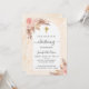 Um quadro de arco e impressão de mármore dourado rosa como fundo. Decorados com ouro rosa e flores, rosas e erva-pampas cor-de-rosa. Personalize e adicione um nome e detalhes.