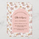 Um quadro de arco sobre um padrão de grama pampas e flores cor-de-rosa e uma cruz ouro. Personalize e adicione um nome e detalhes.