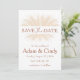 Elevem seus convites para o casamento com esses chic e minimalistas Pampas Grass Salvem as Datas. Apresentando um roteiro simples, mas elegante, este design é perfeito para um casamento tropical ou inspirado em boho. As suaves matizes de terracota e a textura natural da grama-pampas criam um eterno e uma estética moderna. Personalize suas datas de salvamento com seus nomes, data do casamento e quaisquer detalhes adicionais que você gostaria de incluir.