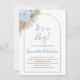 Elegante boho bohemian floral pampas capim É um convite para chá de fraldas de menino que apresenta ilustração aquosa de pampas botânica com azul claro, poeirento flores azuis. Você pode personalizar este belo convite com seu próprio texto.