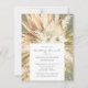 Almoço poste elegante com buquê de aquarela boho de palmeiras, grama-pampas, orquídeas brancas e folhas secas em tons naturais de terra. Altere facilmente a cor de fundo e o estilo da fonte para corresponder ao tema do casamento. Coordenar convites e acessórios disponíveis no repositório.
