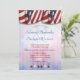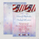 Este pano de festa vermelho, branco e azul patriótico ao longo da parte superior e estrelas correspondentes ao longo da parte inferior sobre um fundo complementar definem o design da frente deste convite de casamento. O fundo do verso do convite combina com o design da frente. Personalize o design com os detalhes do seu casamento nos campos do modelo.