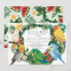 Celebre a chegada iminente do seu pequeno selvagem com este convite de churras de bebê temático tropical caprichoso. O design apresenta um grupo de papagaios exóticos adoráveis e folhagens tropicais em aquarela com flores