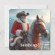 Esta design de Natal divertida mostra o Santo Nicholas em um chapéu vermelho de vaqueiro cavalgando um belo cavalo palomino.